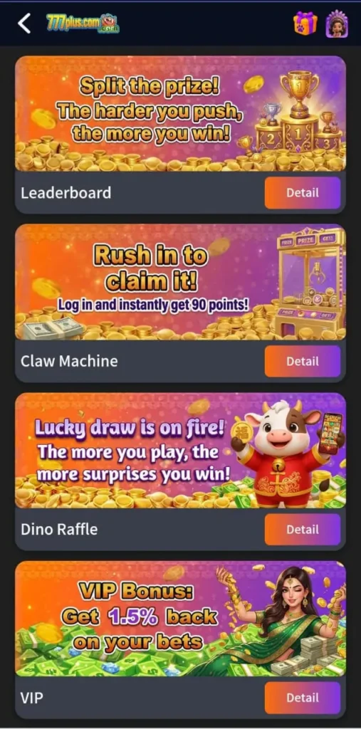 Some versions of the 777plus Game allow players to earn rewards by inviting friends to join the platform.