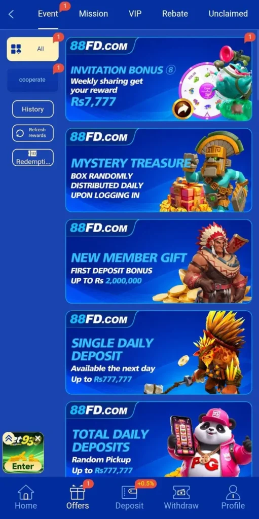 Bonuses play an important role in attracting users. 88FD Game offers: