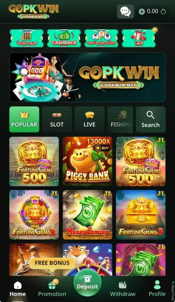 GOPK Win Game is a popular mobile app in Pakistan that offers casino-style earning games where you can win real money. It has gained attention because it supports easy deposits and withdrawals through EasyPaisa and JazzCash.