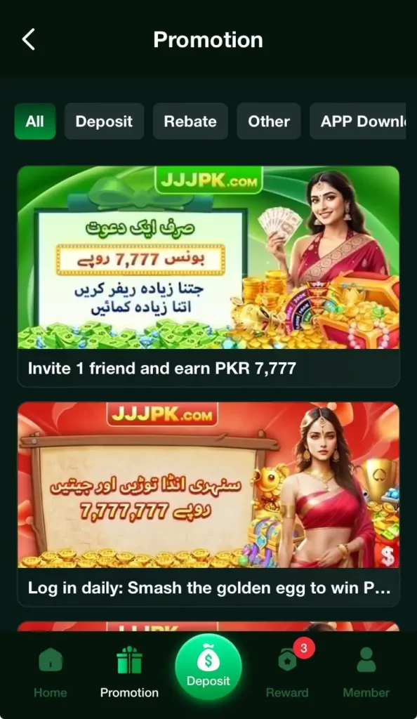 The JJJPK Game is a mobile-based casino-style gaming platform that allows users to play different games and earn real money rewards. It works as an all-in-one entertainment hub where multiple game categories are available inside a single application.