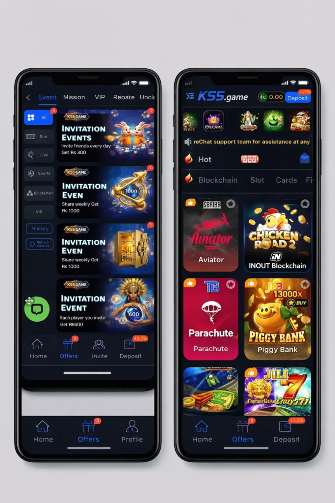 From Aviator and Crash games to Slots and Lotteries, this game keeps the joy going ahead. This app blends its entertainment and earning into a simple-to-use interface, making it very interesting and easy for both beginners and experienced players. The K55 Game has emerged as a favorite among Pakistani users due to the availability of local payment methods.