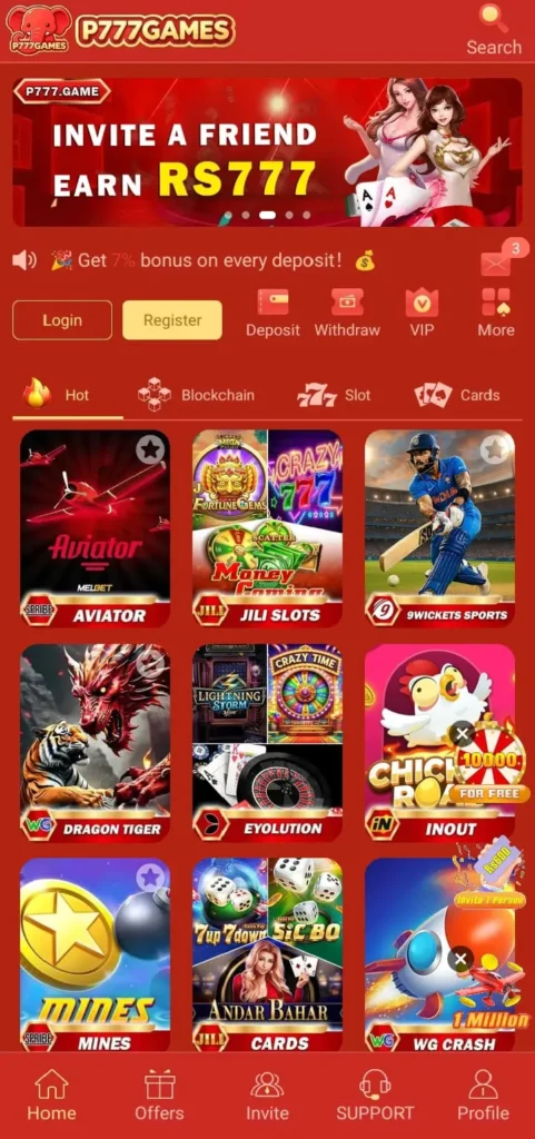 P777 Game is a mobile-based gaming platform that offers different types of casino-style and prediction-based games. These may include slot games, color prediction, and other quick-play formats that are designed to be simple and fast.