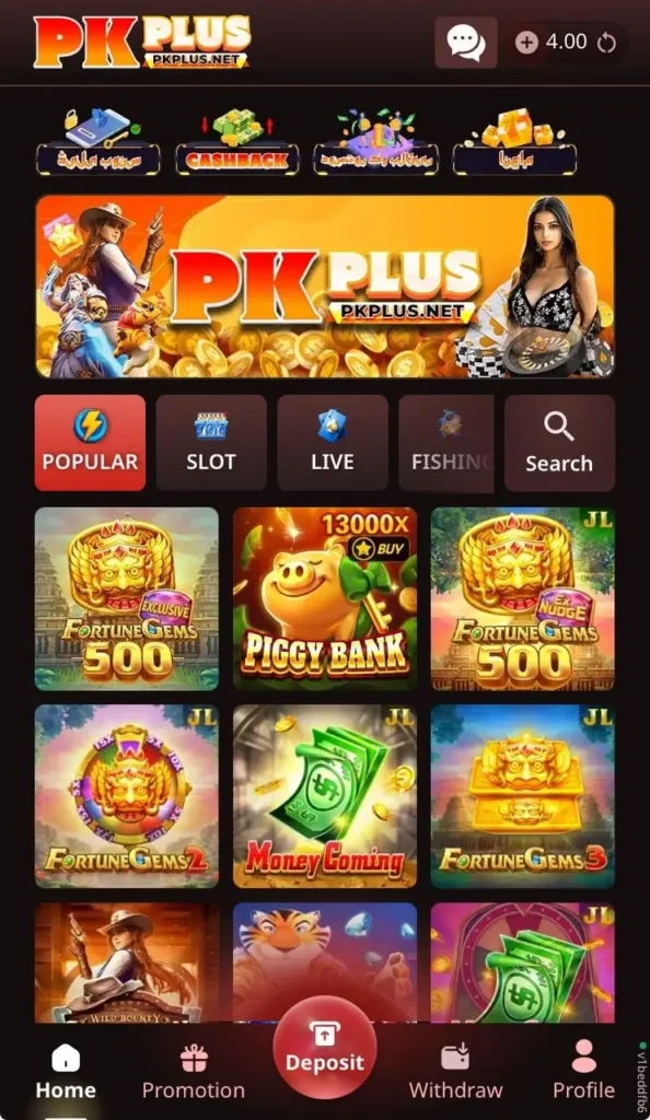 PKPlus Game is a modern real-money earning app created especially for Android users across Pakistan. It functions as a complete casino platform where you can enjoy exciting games and win actual cash rewards. Unlike normal mobile games that only give points, PKPlus Game lets you deposit small amounts through local wallets and multiply your balance with smart play.