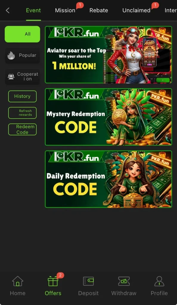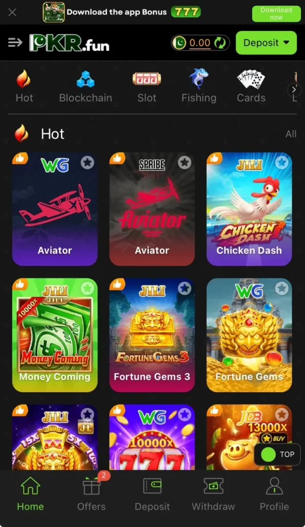 Most versions of the app support local Pakistani payment methods such as JazzCash and Easypaisa, making deposits and withdrawals easier for users.